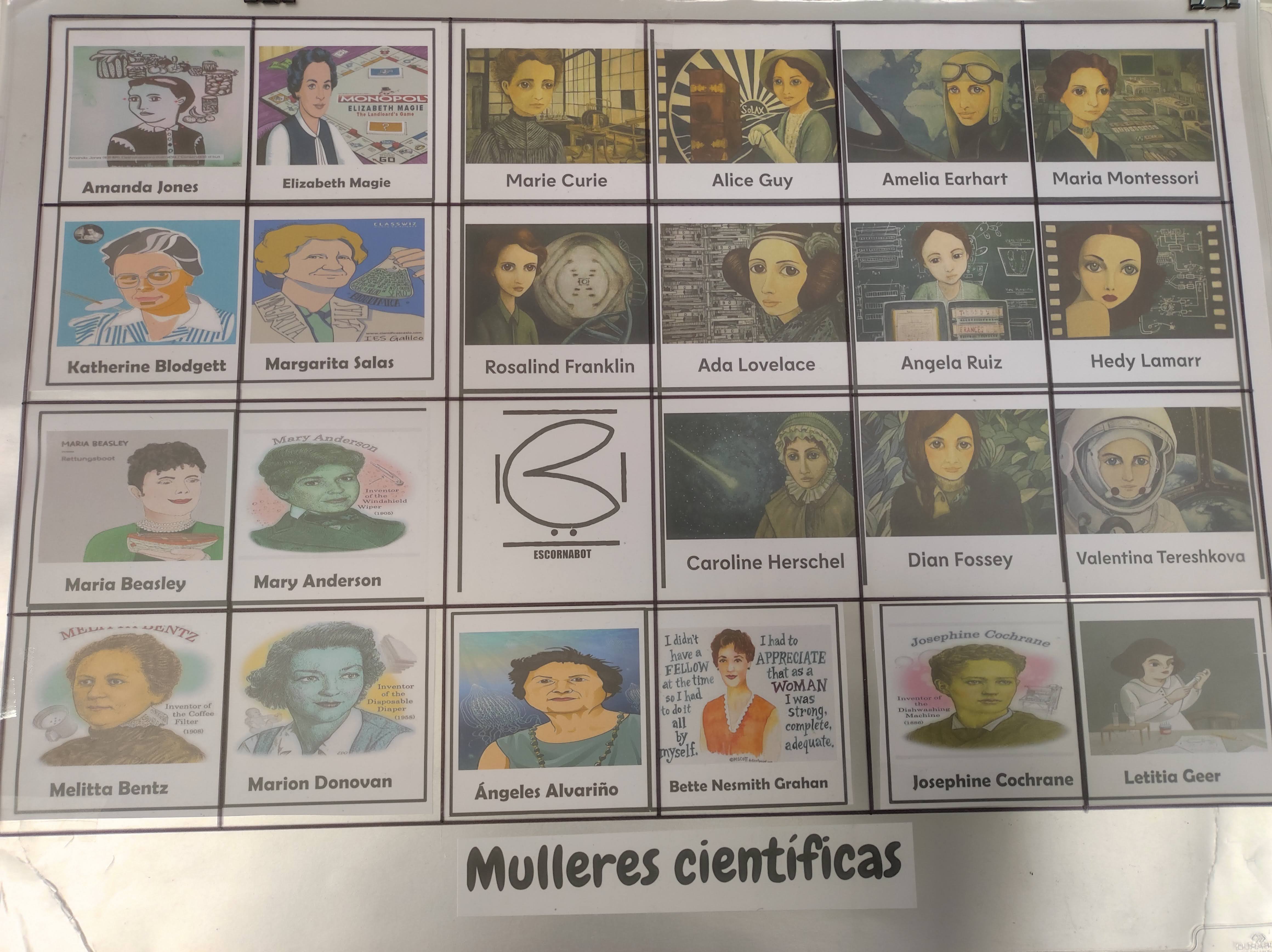 Para este día tamén preparamos lecturas, traballos de investigación e percorridos cos escornabots e co vincibot no taboleiro de mulleres de ciencia, están no espazo creativo da biblioteca….Ven e practica!