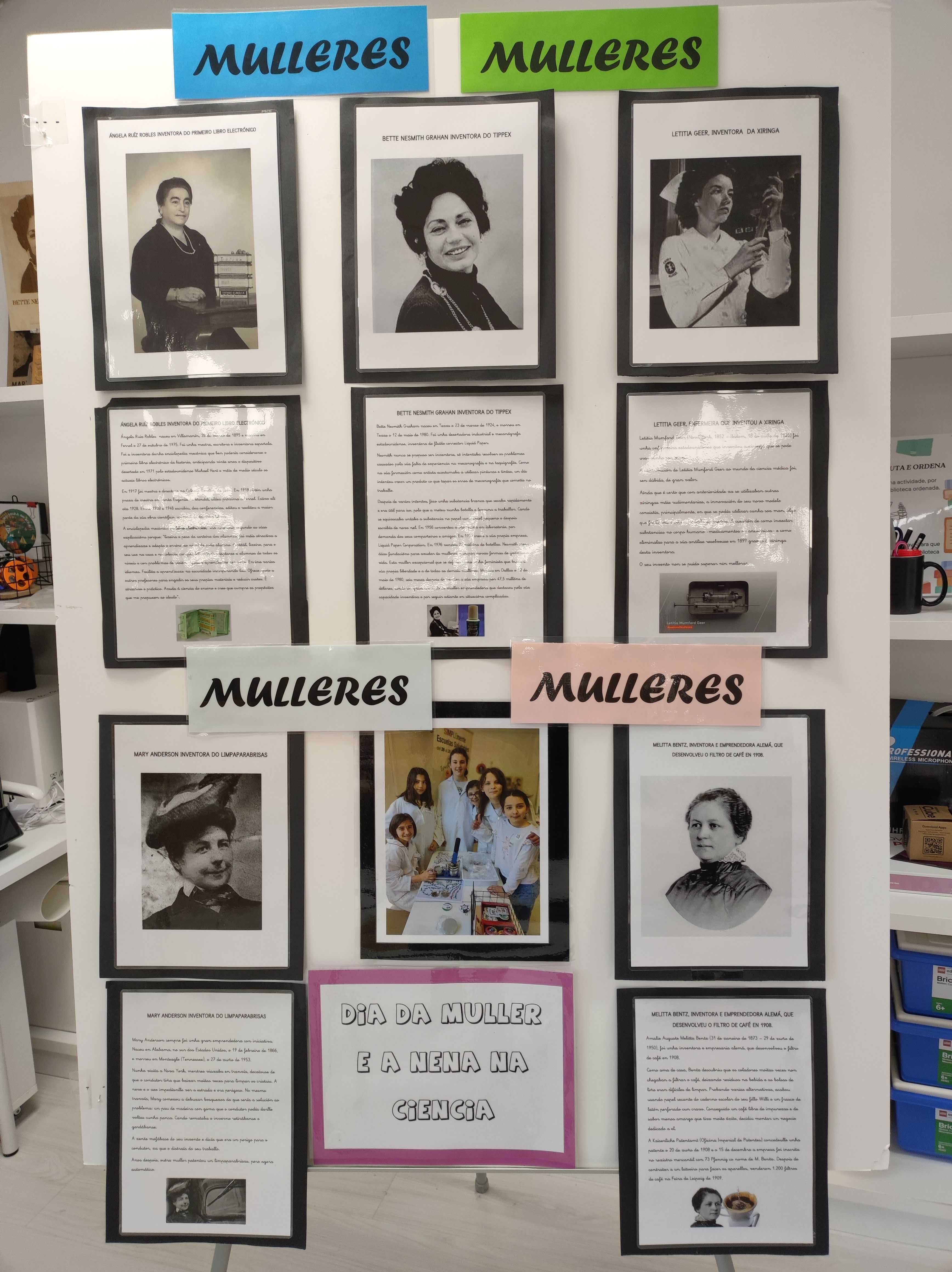 Que podes atopar na biblioteca estes días? Seguindo coa traballo iniciado o curso pasado, este ano preparamos un recuncho de científicas e inventoras. Contamos coa colaboración das alumnas de 6º para que sexan elas as que nos descubran a estas mulleres que co seu enxeño, resolveron problemas cotiáns e grandes retos científicos.