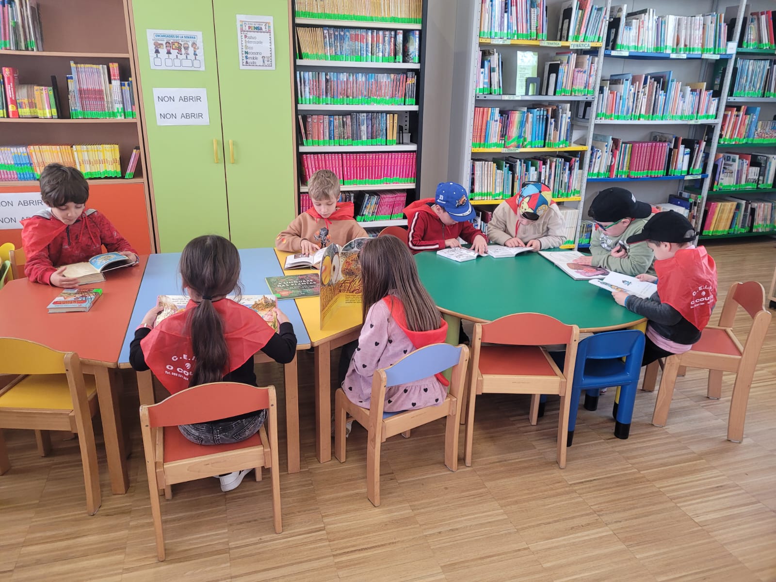 Por último salientar o traballo das voluntarias e voluntarios de 6º que durante esta semana contarán contos en todos os cursos durante o tempo lector. Este ano os contos propostos teñen moito que ver coas cores e coa pintura. “Monstro Rosa”, “Monstro azul”, “Páxaro amarelo”, “O cadro máis bonito do mundo”, “As cores do mundo”, “O pincel de Vincent”, “Nariz de ouro”, “A oca azul”…