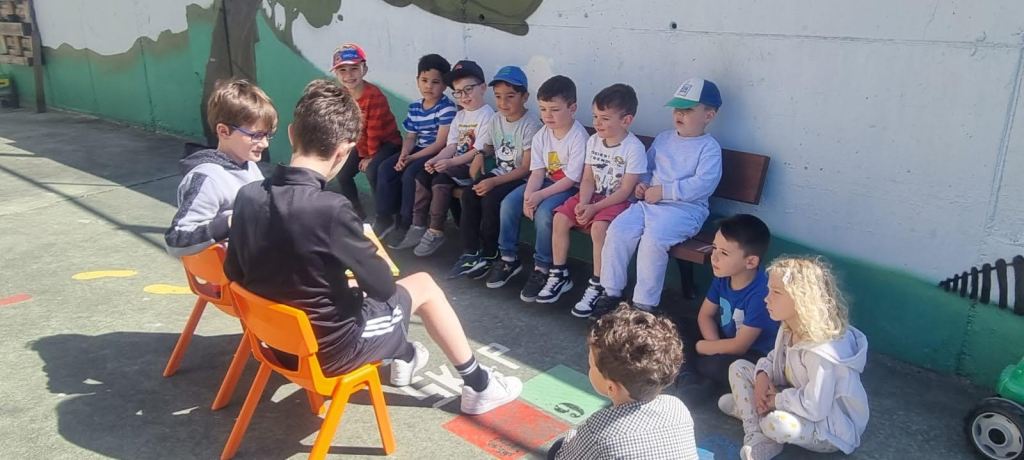 As nenas e nenos de infantil de 5 anos disfrutaron dunha actividade de contos con verbateca e está pendente un encontro con Anxo Moure o vindeiro 24 de abril.