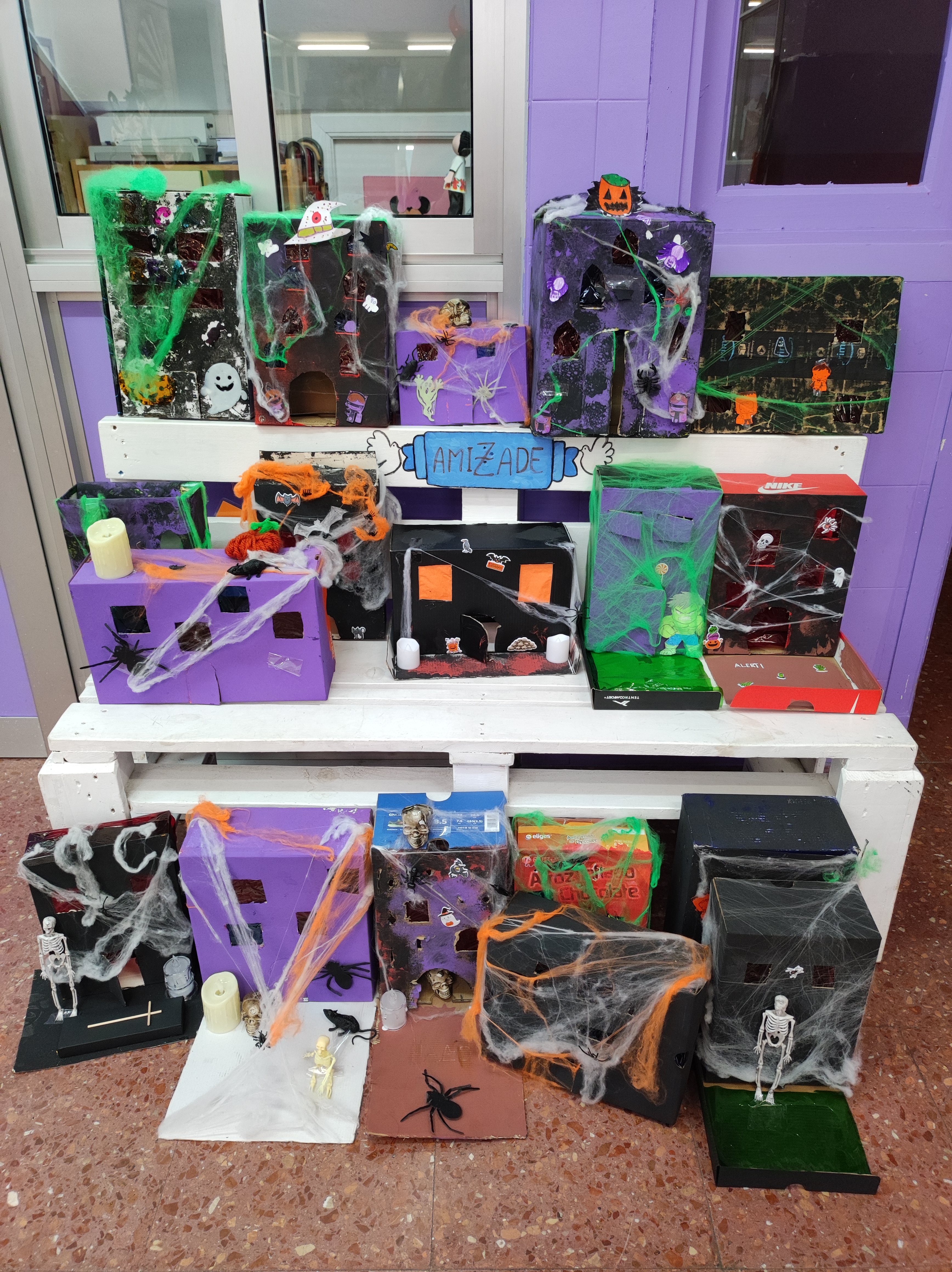 Este ano o proxecto de centro achéganos ao mundo do teatro. As casas do terror e as cabazas eran mini teatros onde non faltaban personaxes. Estas fotos amosan parte desa exposición chea de enxeño e orixinalidade. Grazas a todas /os pola vosa colaboración e bo traballo.
