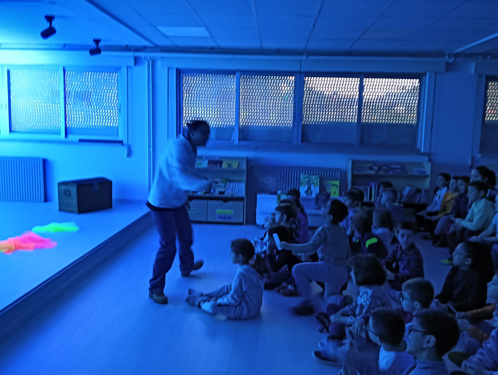 O alumnado do 1º ciclo tivo un teatro de luces do conto: “Onde está o arco da vella?” no que as cores e as emocións van xuntas da man.