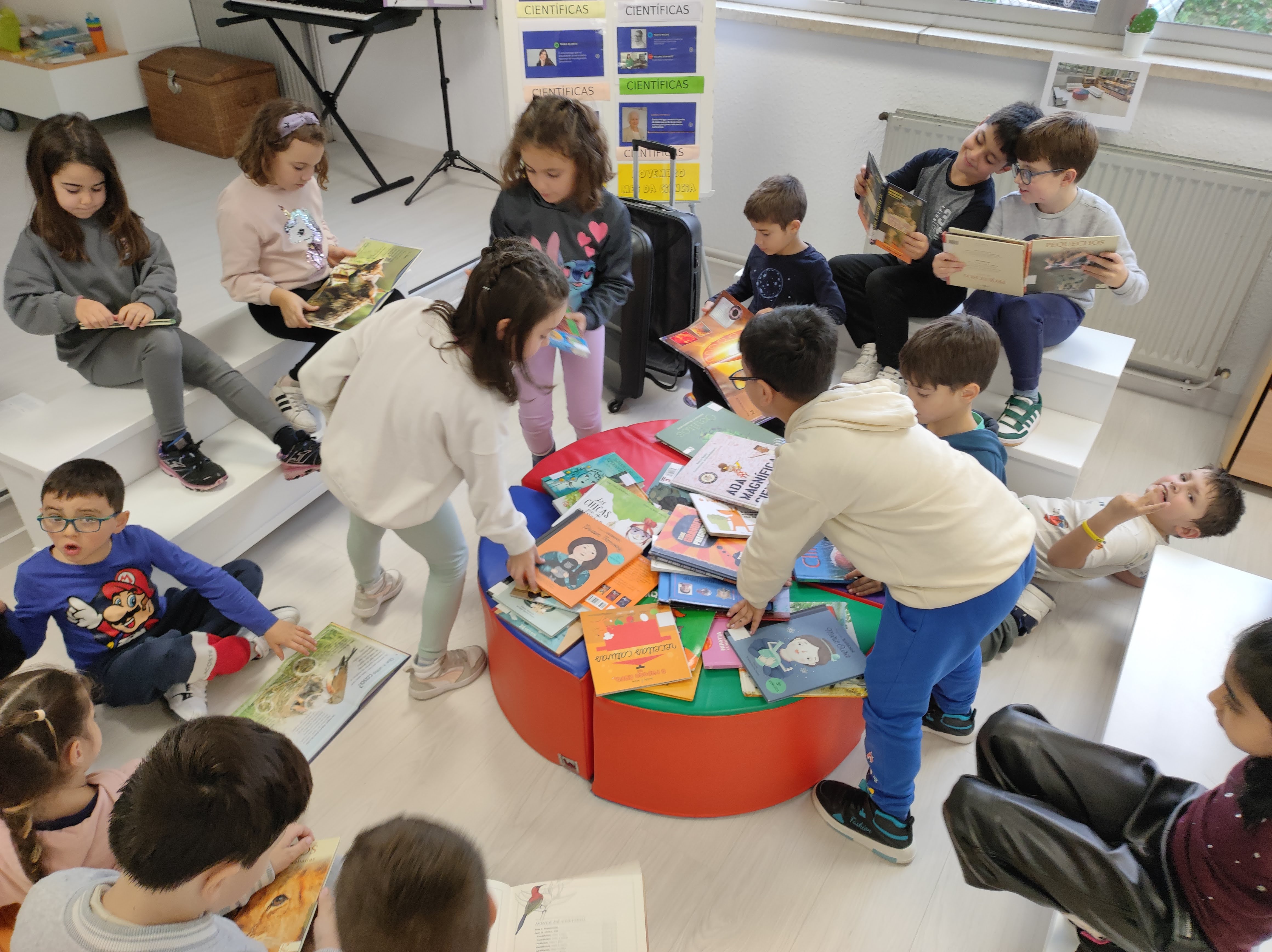 Foi un pracer ver este espazo convertido nun lugar para: realizar experimentos, observar o micromundo a través dun microscopio, explorar imaxes en 3D e mergullarse na lectura de libros de ciencia.