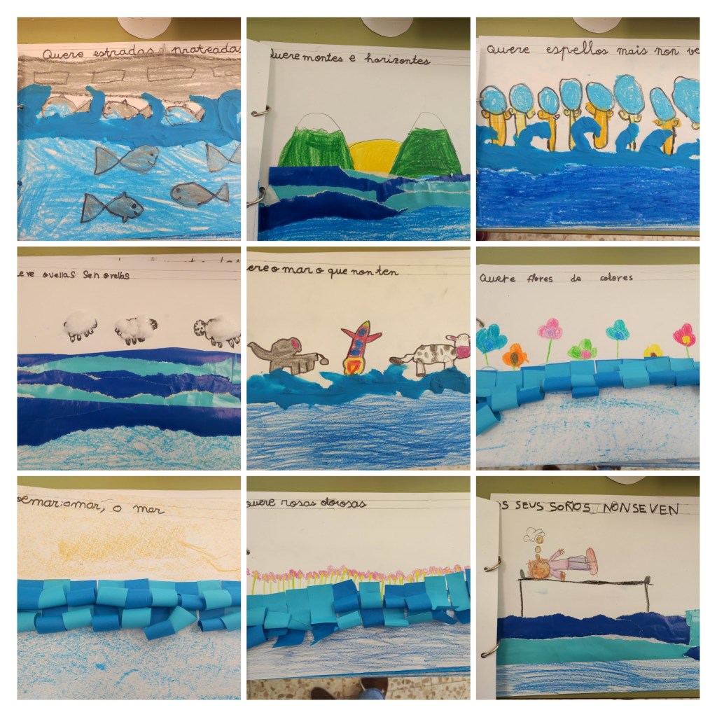 O alumnado de 1ºB realizou un libro co poema recitado o Día da Poesía, ese poema foi escrito, decorado e así de bonitiño quedou.