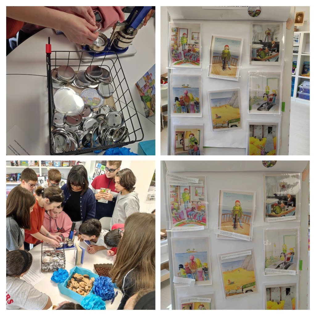 A nosa segunda aventura literaria, co club de 6º, chegou ao seu fin e quixemos celebralo. Preparamos un xogo con ilustracións do libro que repasan os momentos máis importantes, un obradoiro de chapas coa portada do libro e, por suposto, algo doce para endulzar a nosa última conversa do trimestre.