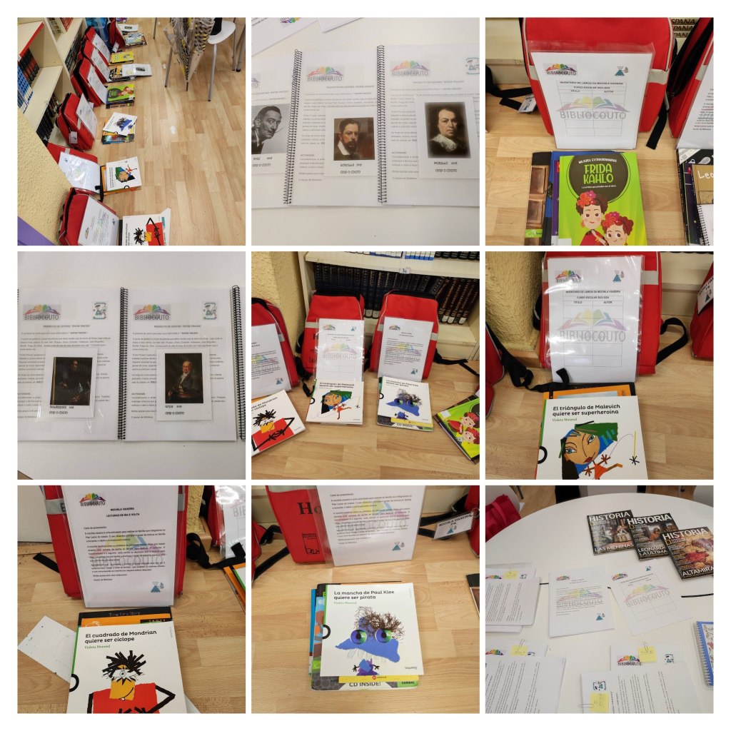 As mochilas viaxeiras xa están circulando con libros e cadernos relacionados co proxecto “Entre pinceis”. Cada mochila leva un caderno coa biografía dun pintor e unha lámina dun dos seus cadros.